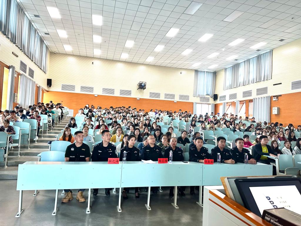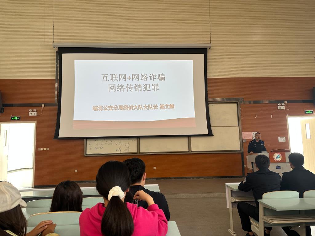 邀请城北区公安分局经侦大队大队长杨文峰、副大队长桓之海和廿里铺派出所三级警长任彭威三位警官为2023级新生开展了防范电信网络诈骗主题讲座。城北公安分局10余名干警,法社LEYU