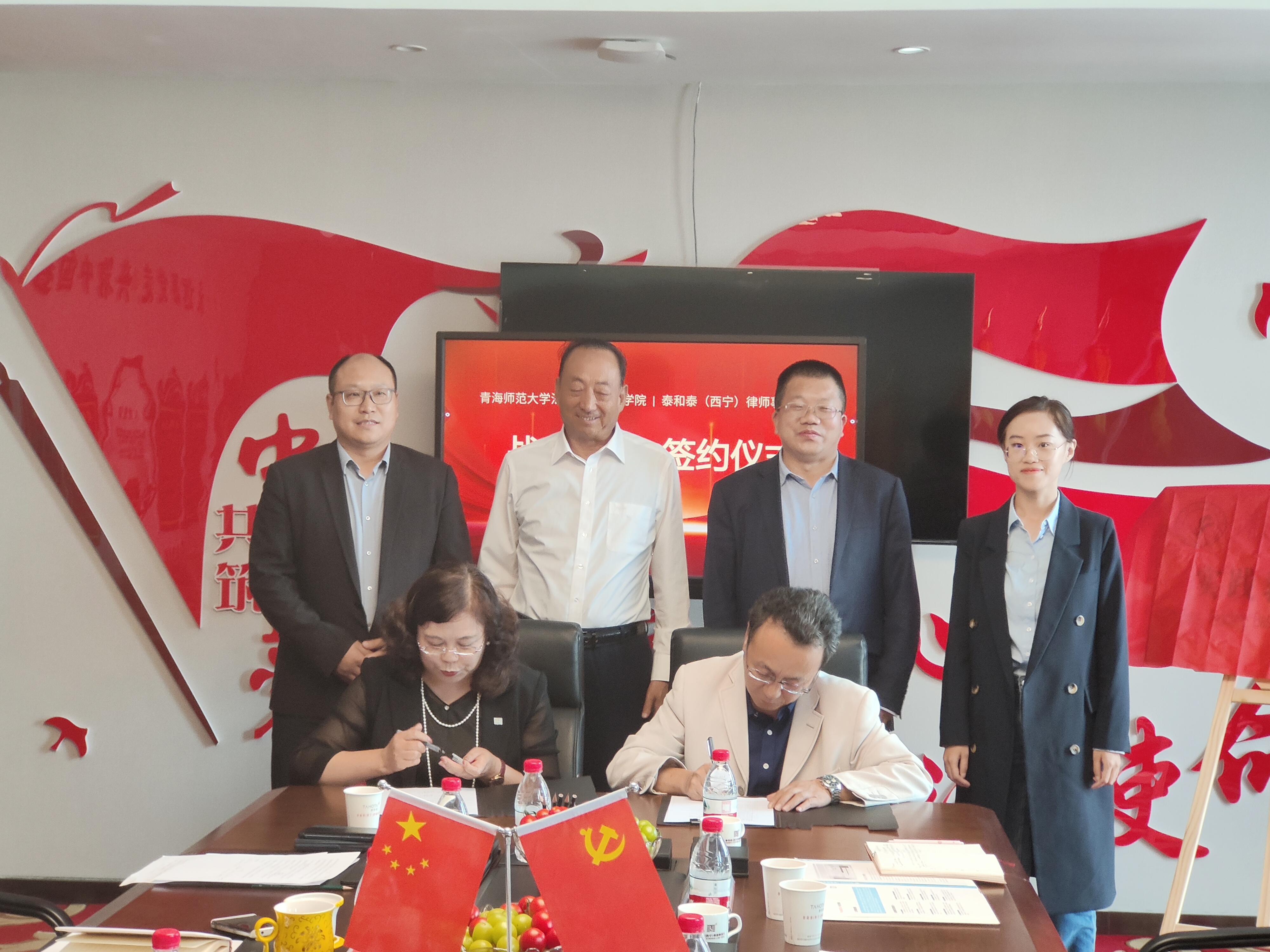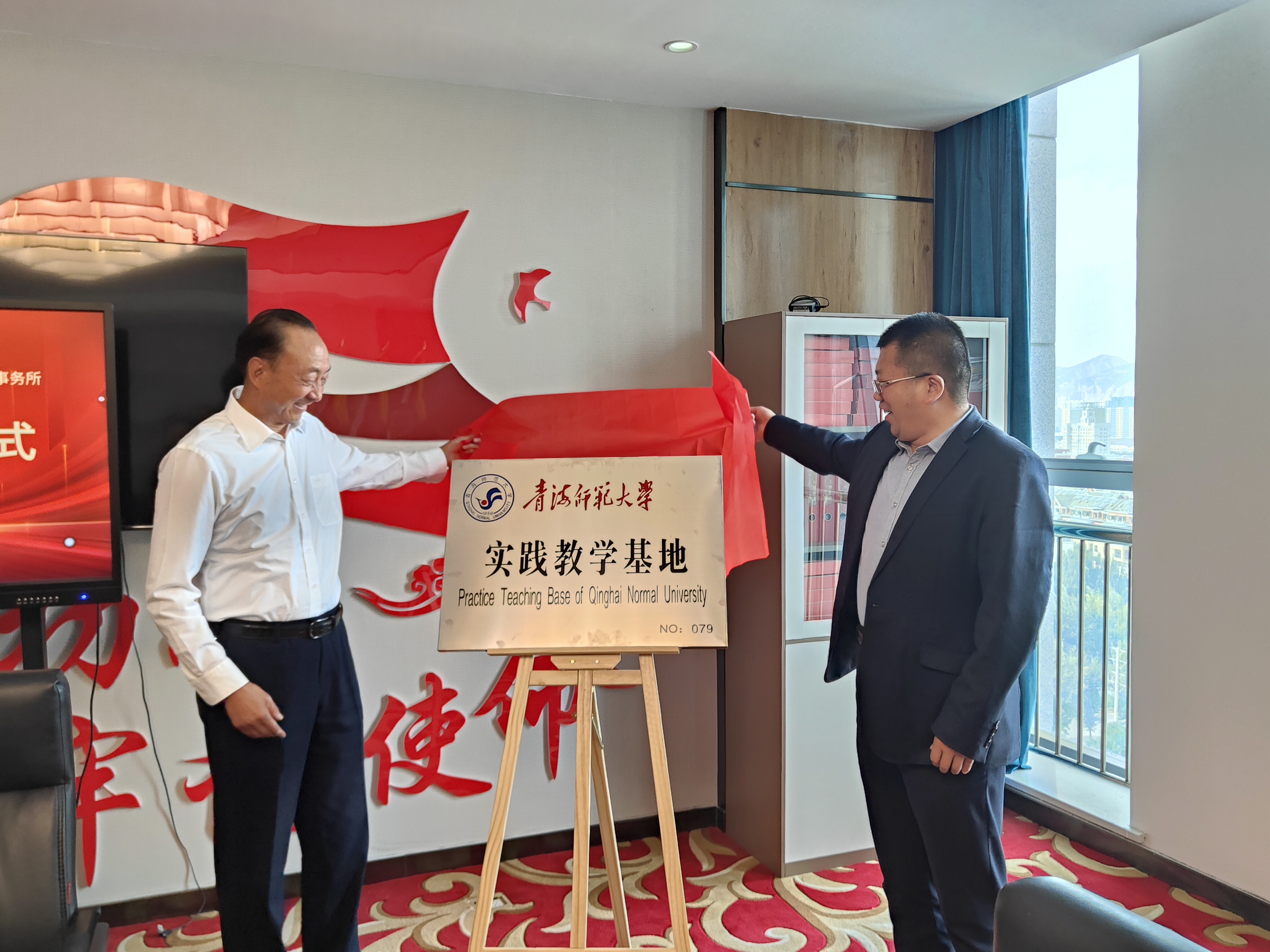 和律所签署了《战略合作意向书》,张瑜和王中杰高级合伙人共同为“青海师范大学实践教学基地”揭牌。