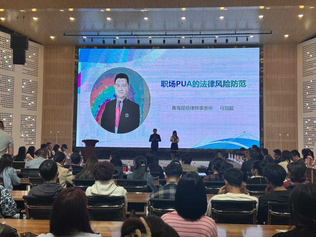 招聘会上,青海昆硕律师事务所马冠超律师作了关于《职场PUA的法律风险防范》的求职宣讲,聚焦当前大学生求职中面临的法律风险问题,从就业现状、就业市场风险、律师入职基本条件以及给实习律师的建议等方面,向与会同学介绍如何防范求职法律风险,实现理性求职、安全求职、成功求职,为同学们上了一堂实用生动的职业发展规划指导课,引导鼓励同学们要深入了解行业前沿动态,探寻适合自己的职业发展道路。