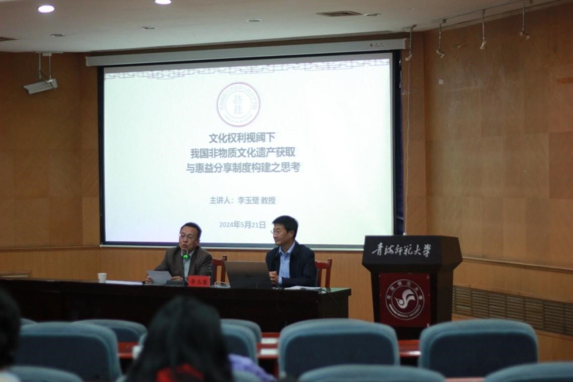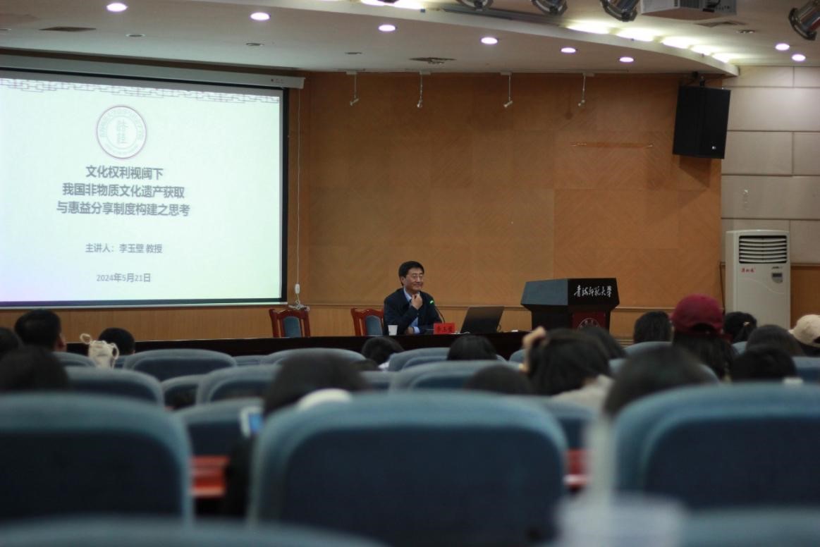 学术大讲堂,为研究生作题为《文化权利视阈下我国非物质文化遗产获取与惠益分享制度构建之思考》专题讲座。讲座由法社LEYU