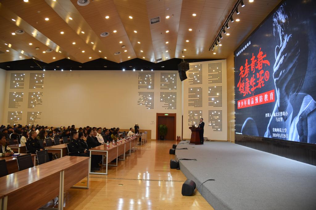 西宁市公安局禁毒支队禁毒干警为同学们详细讲解了如何正确识别传统毒品、新型毒品、第三代毒品的基本特征,以及毒品的危害、如何防范毒品、吸食毒品后的各类案例,引导同学们认清毒品对个人、家庭、社会的危害,牢固树立识毒、防毒、拒毒意识,增强抵御毒品的能力。同时,教导同学们提高对毒品的警惕性,绝不因一时大意或追求快感沾染毒品,在思想上、心理上、行为上自觉构筑拒绝毒品的安全防线,健康生活,幸福生活。
