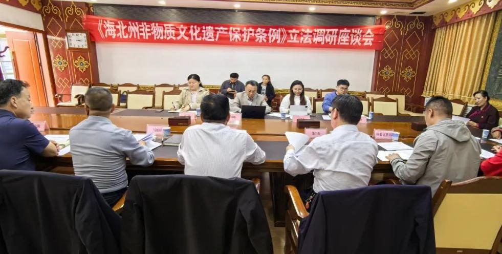 会上,海北州文体旅游广电局主要负责人介绍了全州非遗基本情况,州人大常委会副主任苏东曲介绍了立法背景及目的,马院长表达了对保护非物质文化遗产的强烈愿望,肯定了海北州“政府主导、社会参与、传承人参加”的工作体系,表示后期要深入调研,发现短板和困难,通过立法来解打通工作的堵点、痛点和难点,推动非遗保护工作的法治化、科学化。